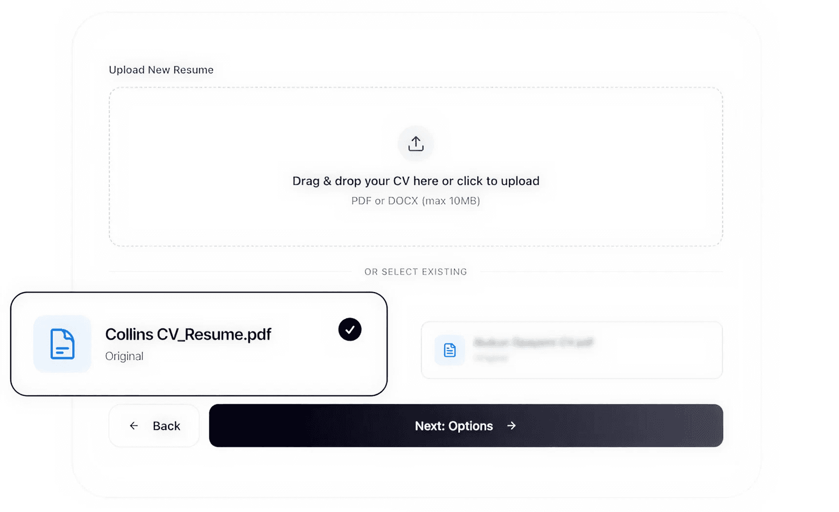 Upload your current CV and we’ll tailor it to the job post keywords, skills, and impact so it’s ATS-friendly and recruiter ready.